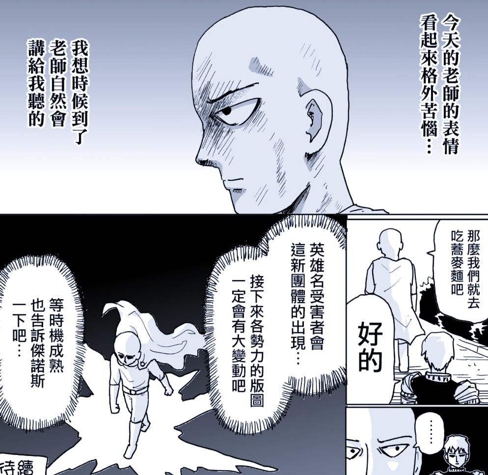 如果杰诺斯所说的,埼玉不会被任何东西所束缚,所以埼玉不会加入什么「英雄受害者会」,毕竟「秃头披风侠」完美诠释了埼玉,听多了,也许就习惯了。