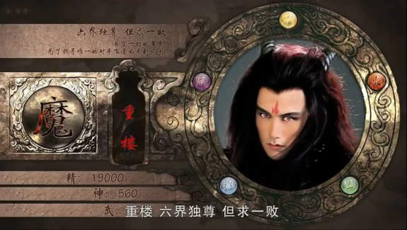 为了更符合游戏,每个人物一开场的时候都会有各方面数值的介绍,飞蓬和重楼也不例外,精、神、武三个数值综合起来就是一个人的整体实力。