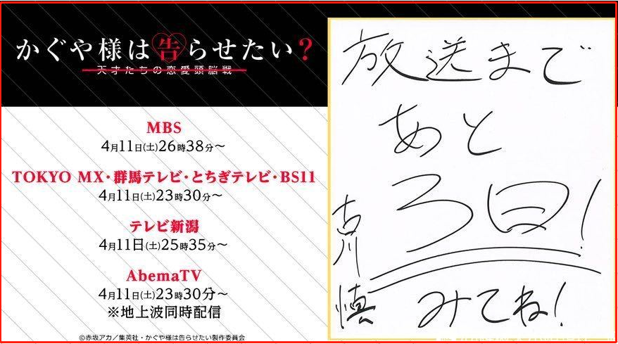 至于《辉夜大小姐》第二季开播时间定在4月11日,而且官推上还放出了倒计时,这也说明辉夜是不会如同春物那样延期,那么刀剑最终章自然也不会,基本上是稳了。另外值得注意的是辉夜B站开播时间是4月12日0:00。