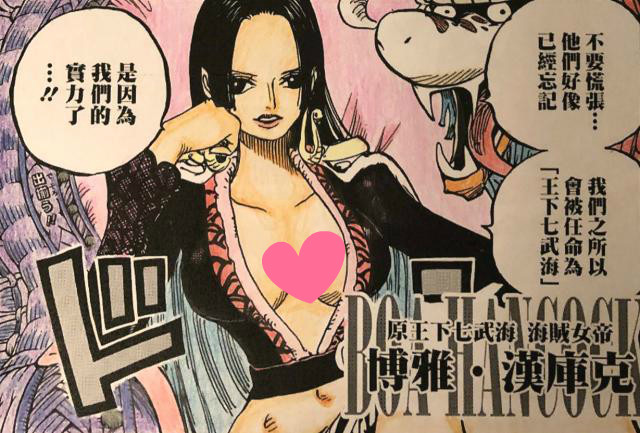 女帝汉库克。唯一一位女性,甚至还拥有霸王色霸气,她的实力被战国认可,目前没有展示过全部实力,但在剧场版《狂热行动》中一脚差点把觉醒状态的巴雷特踢穿,可见其霸气以及爆发力。面对海军来抓捕,她只说了:
