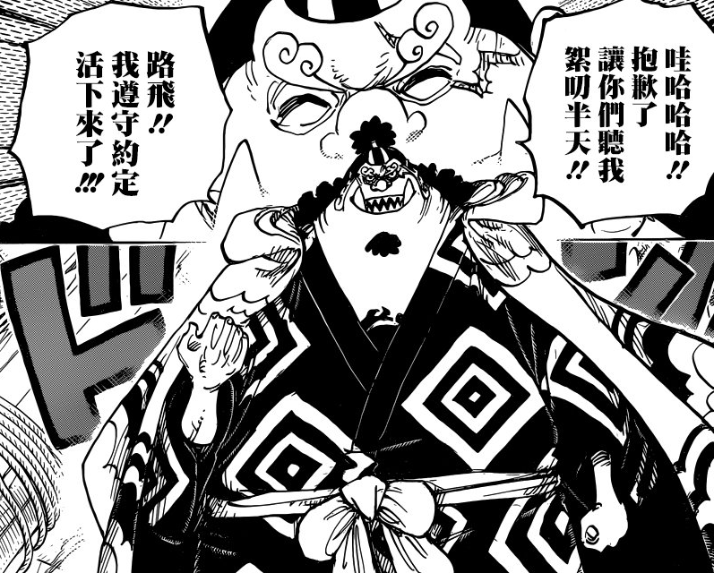对手凯多这边,百兽杂兵团败退,肯定会把最新战败汇报给正在喝酒的凯多和大蛇,不知道两位大佬听了最新局势发展后会作何感想。小七觉得,得知草帽团毫发无损的消息之后,凯多和大蛇毫无反应是不可能的,但如果这时候凯多本尊直接出马明显又太早了,需要一个中间过渡角色,一方面给草帽团制造点麻烦,另一方面也给凯多举办宴会争取时间。