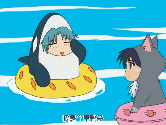 昔日的海洋霸主戴着一个卡哇伊的游泳圈,跟小灰狼说自己是个旱鸭子,脸上泛起蜜汁娇羞……