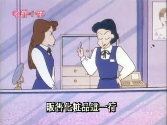 这一次忍子在百货公司做化妆品销售,没错,又是上班第一天,碰到了前来购物的小新以及他妈妈,看到小新,忍子就知道自己完蛋了,小新又吵着要帮她吸引客户,于是乎,忍子第四次失业。
