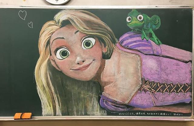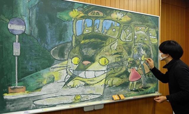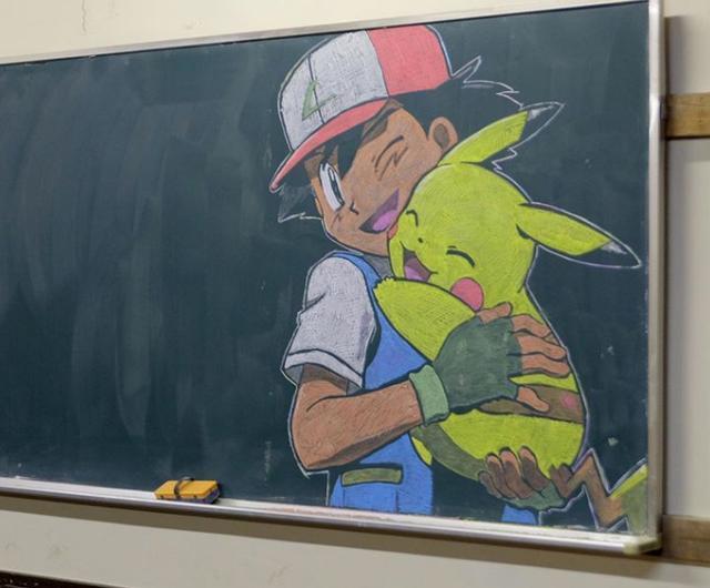 最近,就有位超强的日本美术老师引起大家的关注,他的名字叫Hirotaka Hamasaki,本职工作是在一所高中教美术课,不过课余却经常用黑板当自己创作的绘卷,在上面创作了不少动漫角色,而且还拿落叶堆起了皮卡丘一类的角色,太强了。