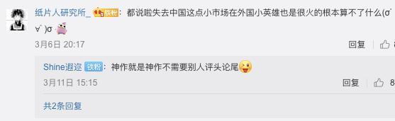 那些评论充斥着对于这部动漫作品的喜爱,以及对于“中国市场”的小视,随便翻翻就能发现类似的言论。“轰轰”、“咔酱”的亲昵称呼频出,他们认为退出中国市场,对于“小英雄”而言并没有产生多大影响,反而促进了这部作品在世界上的知名度成长。先不说他们的观点是否正确,光是这态度,就很让人寒心。一次又一次贬低中国市场份额,似乎全然不知他们在打下这段话时,用的也是中国汉字。