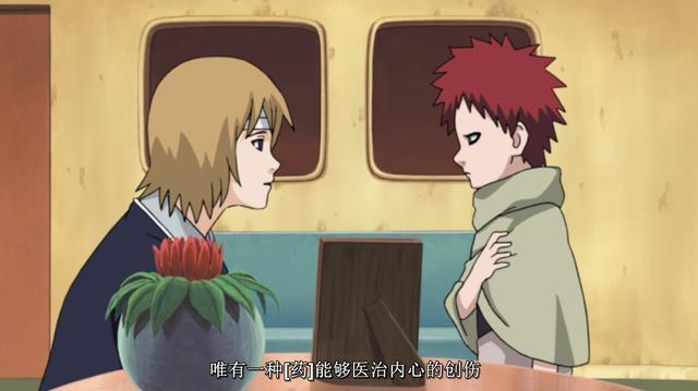 我爱罗的父亲一直和他很陌生,在他的回忆中没人愿意和他玩,唯有他的舅舅愿意呆在他身边,还教导他何谓爱,我爱罗内心的伤痛是靠着舅舅的一点一滴陪伴慢慢治愈的,而也是舅舅让我爱罗重新敞开心扉,再一次尝试着与其他人交往,如果舅舅就此能够引导我爱罗的话,他就会像被伊鲁卡引导的鸣人一样,成为村子的力量也说不定。