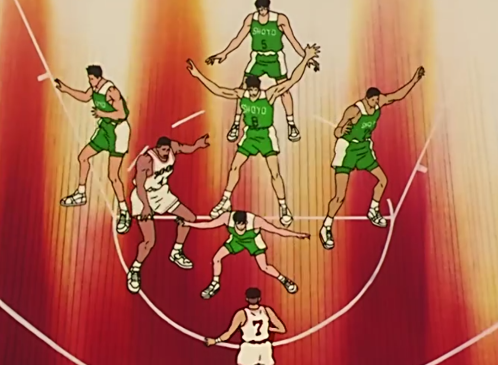 翔阳四联一盯的防守战术就是为海南准备的。湘北一战时,长谷川主动提出用四联一盯的防守来对付三井寿,显然他们是经过了平时的刻苦训练。而三井寿真的换成没有外挂的神宗一郎,或许还真能被压制到仅拿5分!而用四人联防包夹切入的牧绅一也正是为藤真健司的防守减缓压力。