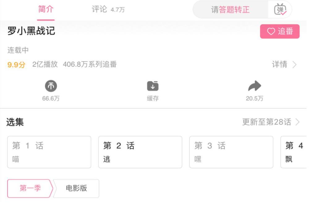 但只要对动漫或者《罗小黑战记》稍微了解一点的人都应该知道,这部作品其实更早是有剧场版的,并且自2011年开播以来,只更新了28集,每集平均八分钟左右,并且目前还在连载中,有网友评价说:番剧主要分为五大类:季番、半年番、年番、世纪番和罗小黑战记,可谓是讽刺的非常到位。
