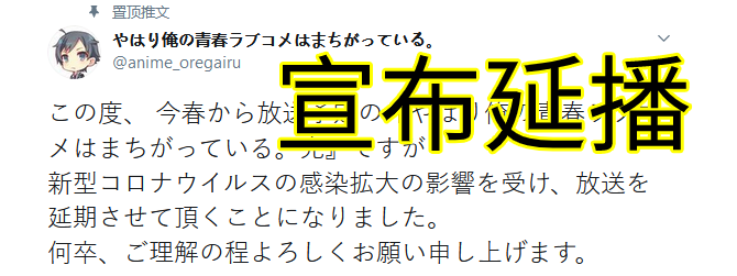 可是,令人意外的是,《我的青春恋爱物语果然有问题》完结篇在近日被宣布延播,这部剧成为了又是被疫情“耽误”的番剧,在失望的同时,广大漫迷们也表示非常无奈。事实上这个结果其实是可以预料到的。