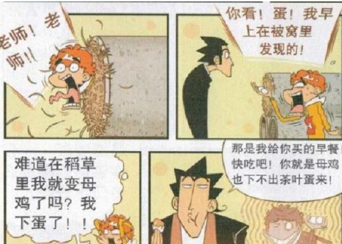 第二天,这天亮之后,阿衰就大声地喊着金老师,然后跑到了金老师的面前,手上还拿着鸡蛋,说是在被窝里面发现的,不什么时候藏在被窝里的,想着不会是因为自己在稻草里,所以自己现在都变成老母鸡了吧,阿衰怀疑自己下蛋了。金老师一脸无语的看着阿衰就说,那我买的早餐“茶叶蛋”来的,母鸡也不会生茶叶蛋吧?