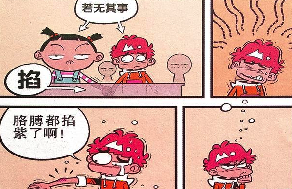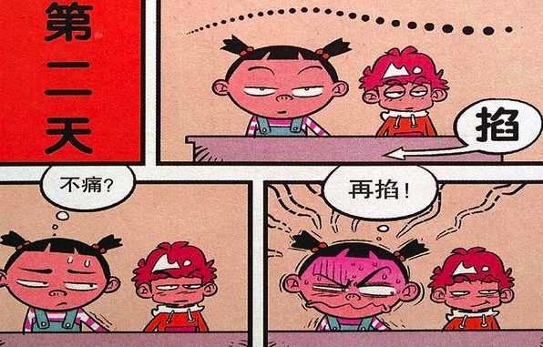 大脸妹是班上“战斗力”最强的女生,班上的男生都不是她的对手,阿衰即使是和她明刀明枪的来都打不过,更何况是在暗处,他很快就遭到了大脸妹的暗算,胳膊上被狠狠地掐了一下。看着自己又红又肿的手臂,阿衰委屈地留下了眼泪。