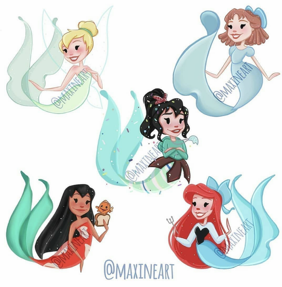 而国外一位画师大大@maxineart,特别喜欢画美人鱼尾巴,于是她画出了迪士尼25位“美人鱼”,公主和仙女集体亮相,这画面真够养眼呀!