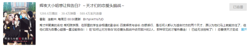 辉夜大小姐想让我告白第二季如约开播,并且如今开播一集就有着一千二百万的播放量,实在是太可怕