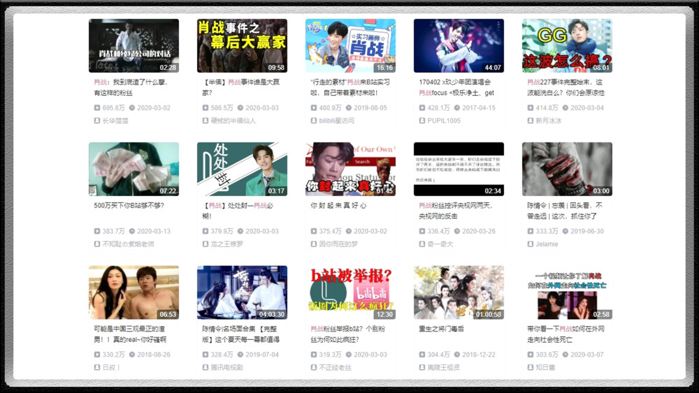 如今的B站众多明星的热点加入让饭圈大量涌入,就拿肖战相关的视频举例,高达百万的播放量就足足数百个,更别说其中替肖战唯粉洗白的视频有多少了。其中不乏还有很多视频恶搞肖战也获得了不俗的流量,甚至有网友戏称,肖战要成为新一代的B站明星。