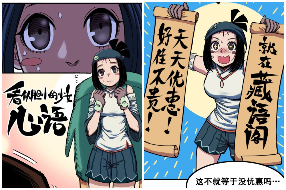 这时,此前躲在墙角默默观察莫浪白其的神秘女生,终于鼓起勇气上前叫住莫浪。我们这才看到女主的全貌,背景介绍其名字叫做心语。她用蓝色头巾扎着头发,头巾上有着小黄鸡的图案。她还背着一个巨大的蓝羽鸡背包,这让小菌联想到鸡大保与小飞,不知道两者有没有关系。大大的眼睛搭上两个酒窝,一双大长腿,可爱与性感完美结合,一下子让还在恼火的莫浪好了,小菌看完也好了。