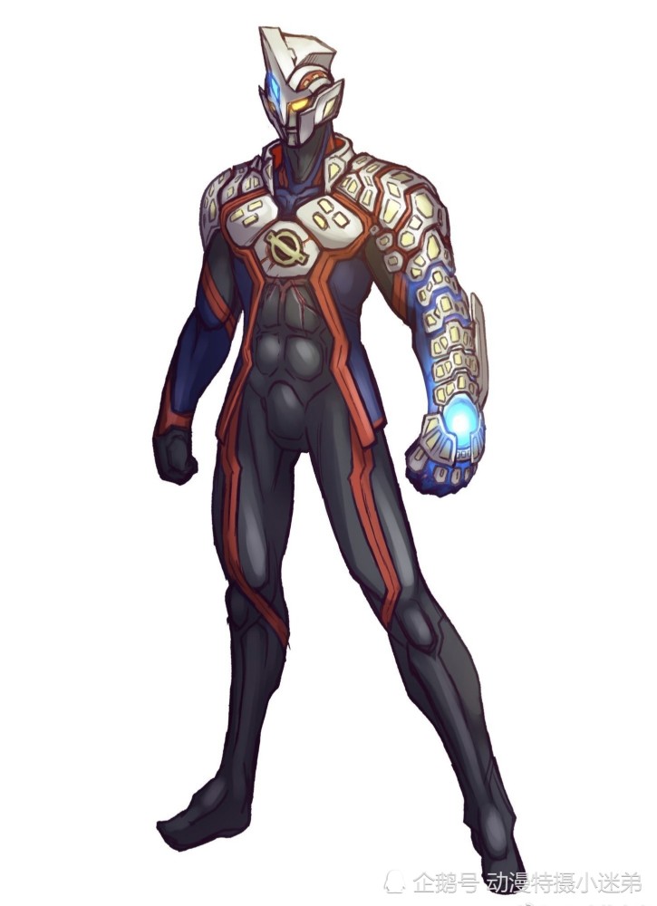 第二位奥特曼应该是一位擅长力量的奥特曼,他也有两种形态,第一种形态是普通形态,这个造型下的奥特曼整体的颜色以黑色和红色条纹为主,身上还有鳞片形状的护甲,从肩部一直包围到手臂上,手掌上还有蓝色的发光手镯,没有奥特计时器,原本是奥特计时器的地方被封印起来了。