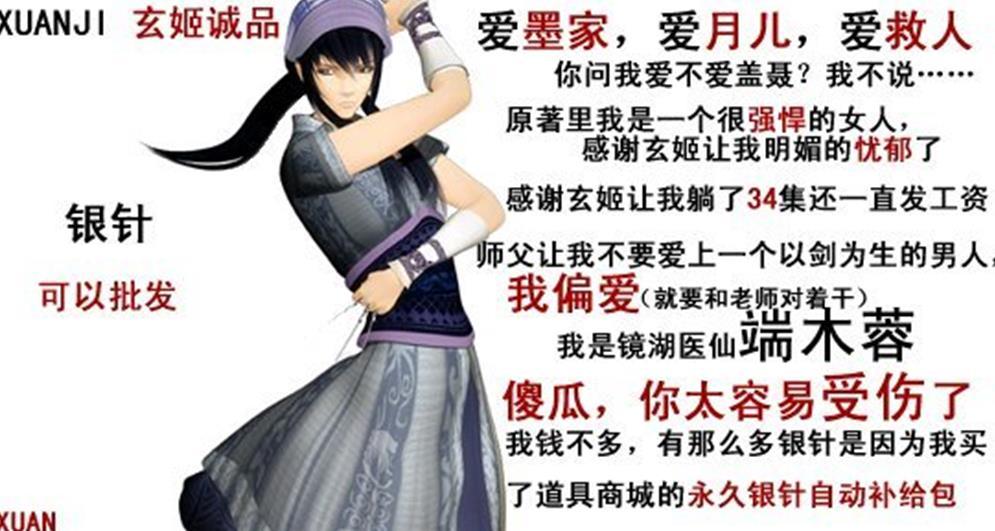 其实在这个标签出来的时候,端木蓉已经躺了好几十集了,所以才会出现蓉姐姐的吐槽“躺了几十集依然给发工资”。现在回想起来端木蓉真的是太惨了,机关城一战结束之后就一直躺,躺到秦时明月最后一集才醒,整整三部的时间,更苦逼的是刚醒第五季就完结了。不过好在第六季的预告中端木蓉出场戏份还不少,算是回归主角阵营了。