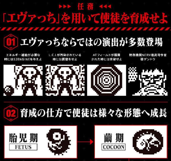 这个电子宠物取名叫汎用卵型决战兵器,听起来就非常具有反派大魔王的气息,然后他可以养育超过20种“使徒”,想想是不是有点小激动呢。你可以培养属于自己的反派角色了呢!说不定养大了就能毁灭地球了,可以说非常满足人的中二幻想了。