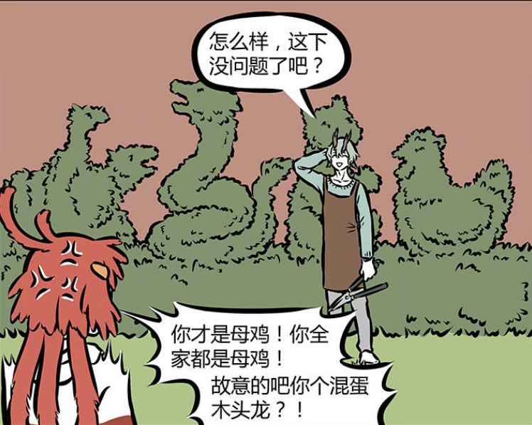 不过青龙还是失败了,因为他将大公鸡修成了母鸡。看来青龙园艺技术真是绝活呀,竟然可以将公鸡修改成母鸡。不过朱雀很生气,她感觉自己要疯了。人家本体明明是朱雀,怎么会和普通的母鸡相提并论呢?朱雀生气的表示你这家伙就是故意的,你全家都是母鸡。看到朱雀这么生气,青龙无奈地摸了摸头。看来青龙打算卖萌蒙混过关,不过朱雀真是要疯了,对此各位小伙伴怎么看呢