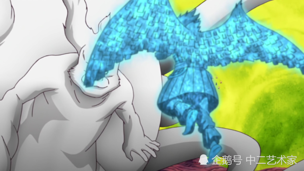 之后浦式终于攒足了能量开始蜕变了,进化后的浦式不仅额头上长出了金色的轮回眼,失去了的双眼也恢复过来了。但是他的颜值却直线下滑,看起来就是一个活脱脱的鸟人,堪称史上最丑的反派BOSS了,不得不说,大筒木一族的进化方式真是越来越不堪入目了。
