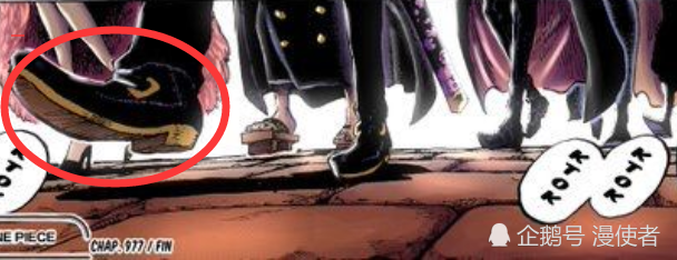 凌空六子除了德雷克和佩吉万以外,其他四位仍旧很神秘,从977话尾田给他们脚步的特写镜头来看,有一个走在最前面的人应该是老大,而他脚上的皮鞋让人联想到了东海的一个伏笔人物,没错,就是阿金。