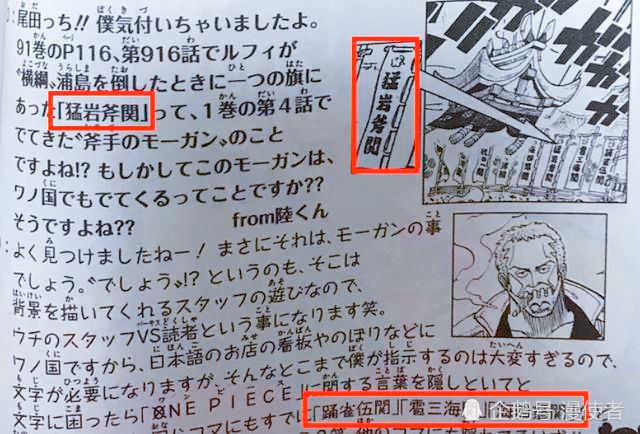 而尾田给的解释非常直接,他回答了读者这个质疑,“可能吧,或许就是蒙卡”。蒙卡当年砍伤卡普后就一直潜逃,至于行踪目前唯一的线索就是尾田这句话,那么也就可以肯定蒙卡人就在和之国内。