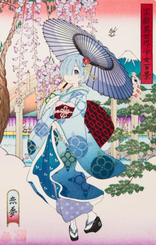 浮世绘和二次元其实也是有着有机结合的方式的,因为,他们的共通点,就是,都是“画”。浮世绘是传统的静态画,动漫,其实也可以以静态的形式来展现,例如,漫画,插图。所以现代的技师就想,是不是可以将这两者近一步的进行结合,来获得一种融合了不同文化质感的视觉效果呢?于是,二次元浮世绘,就诞生了。