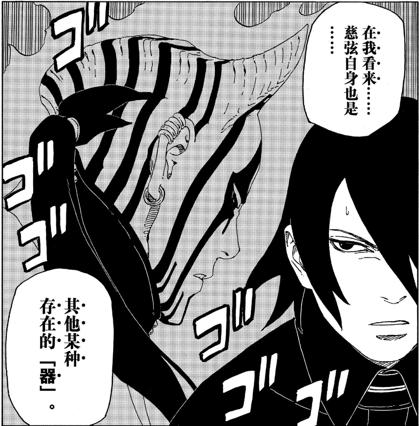 此时的佐良娜也在医院病床上休息,他对自己父亲佐助讲述着看到博人长出角战斗力暴涨的样子,佐助在和巳月经过交谈之后知道博人可能是桃式用来复活的容器,佐助通过这些关键信息知道川木应该也是容器,但壳组织的首领慈弦也有楔,所以慈弦也是某种存在的容器。