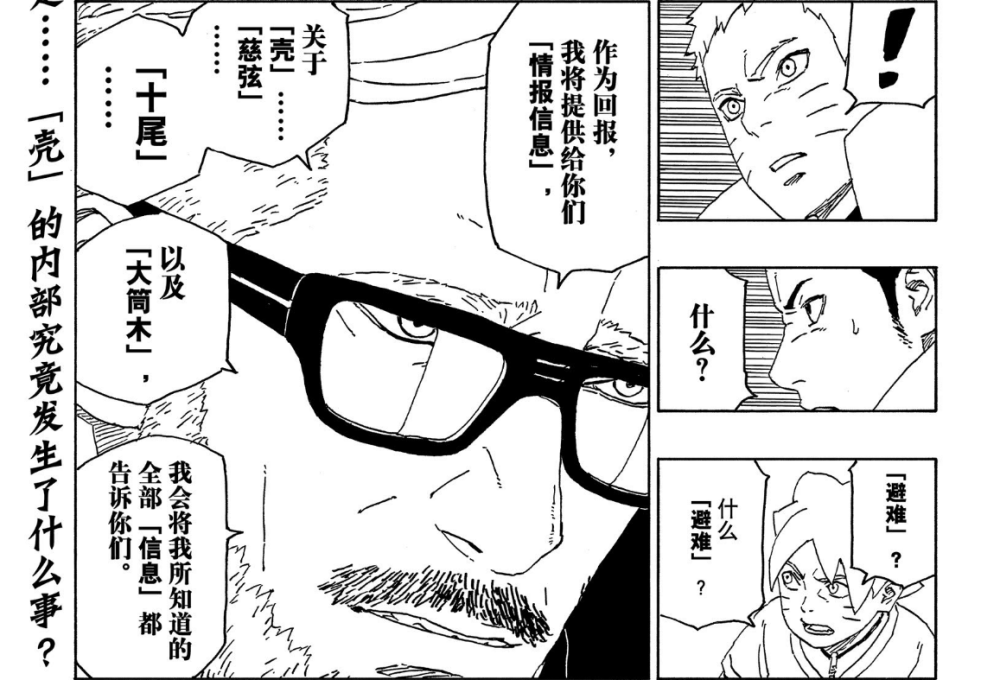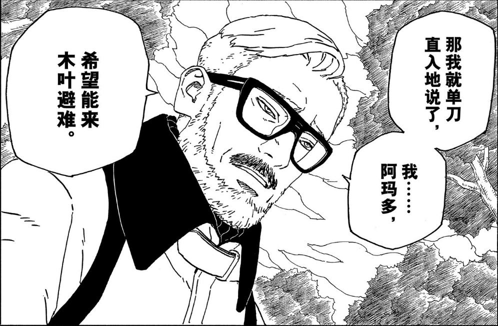作为接受庇护的条件,阿玛多会无条件的交出和壳组织、十尾、大筒木、慈弦的所有情报线索。在所有人惊讶的表情中,这一话的内容就结束了。
