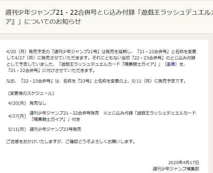 其实这种情况并不是笔者的推测,而是正在发生的事实。漫迷们都知道,《海贼王》一直都在JUMP上连载,如果JUMP不发售,那么就算尾田完成了画稿了白搭。根据日本方面最新消息,受疫情影响,本周JUMP和下周合刊。也就说,本周不会有JUMP发售了,自然也就不会有海贼王更新了。