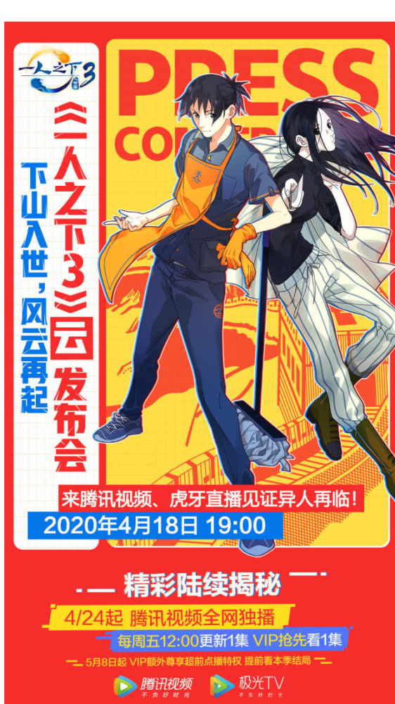 但是也为了回馈许多忠实粉丝们的耐心不放弃的等待以及热烈的期待,一人之下的动画官方还宣布即将举办国漫第一次次线上的云发布会,随着音乐以及声优的阵容的逐渐拉开迷雾,《一人之下3》云发布会也没有多远了。