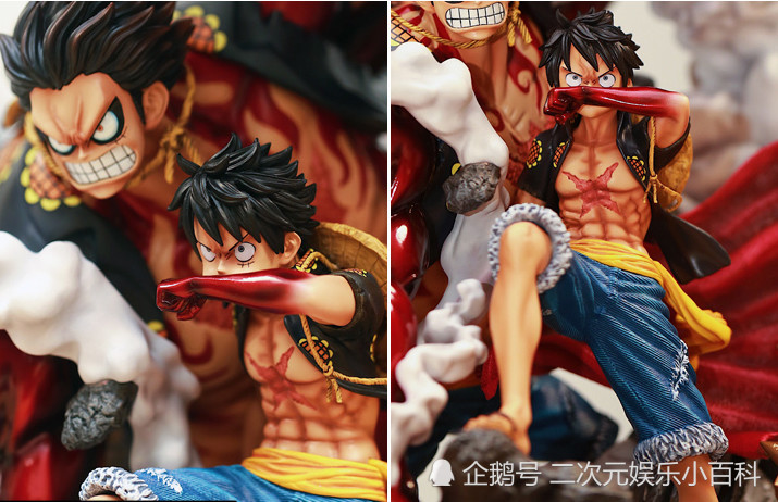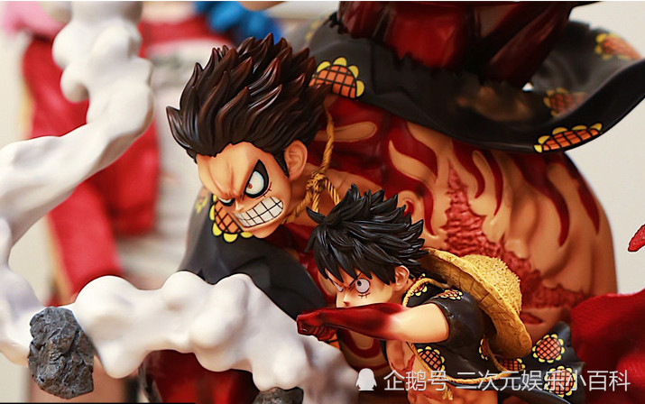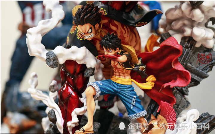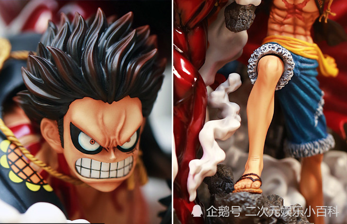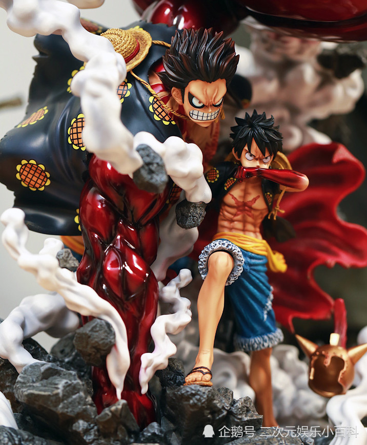 看到这张图是不是第一反应有种不知所措的感觉?的确!这个手办虽然主角是路飞,但是海贼王的动画里路飞可从来都没有出现过图中的这个场景,手办很有创意的把路飞四档与普通状态完美的结合在了一起!