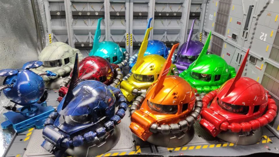 昨天还说扎古头比较少,今天一大群来袭!同样的素材做成不同的效果和色彩,按照作者自己说的,这是葫芦娃的一家子,赤橙黄绿青蓝紫全都有了,还有一个老的掉渣(做旧)的爷爷……
