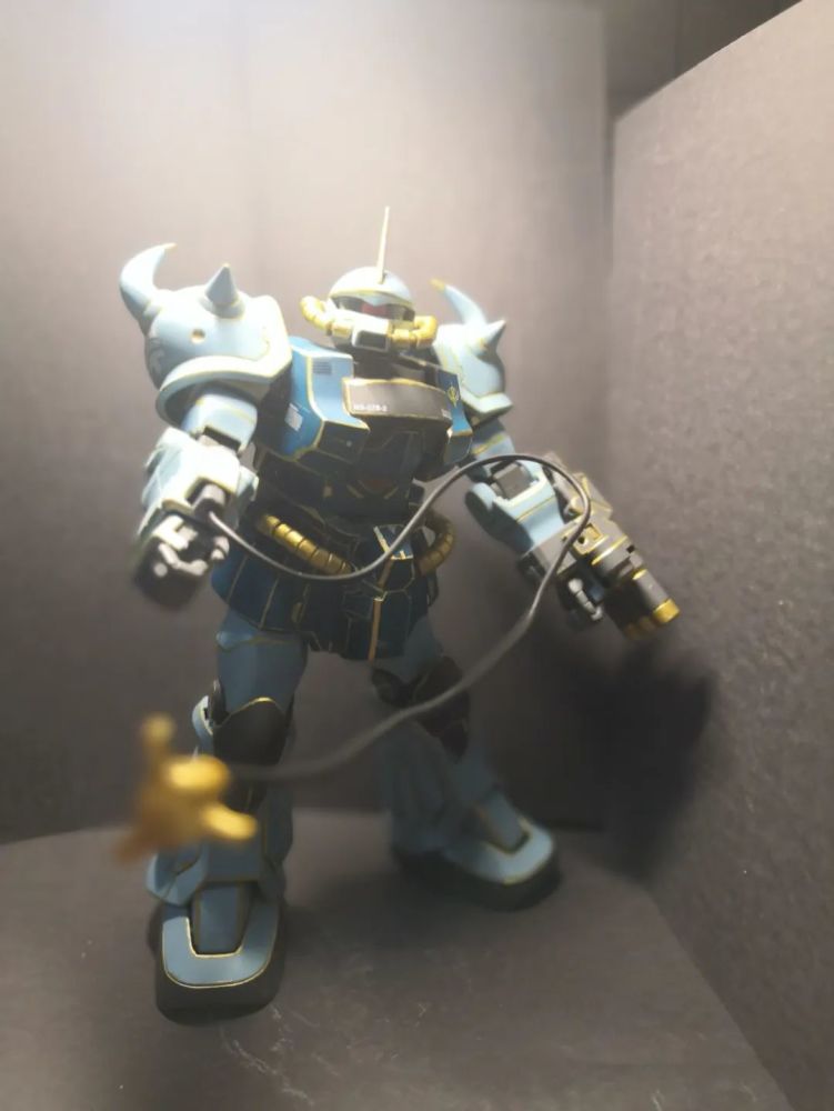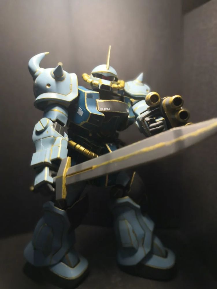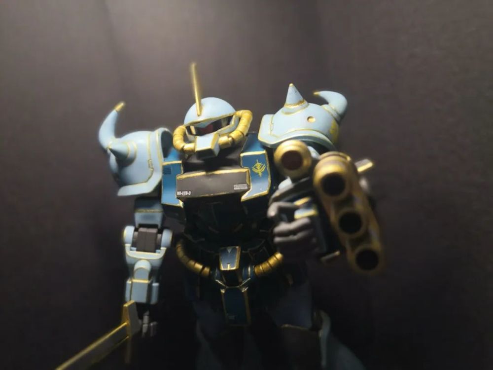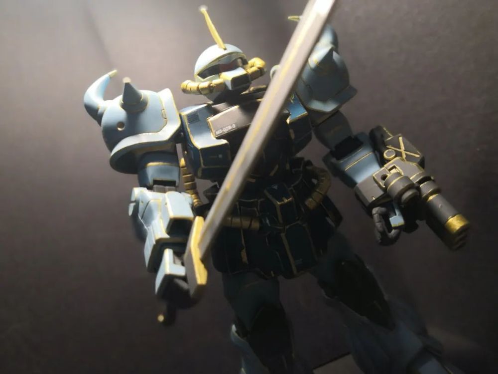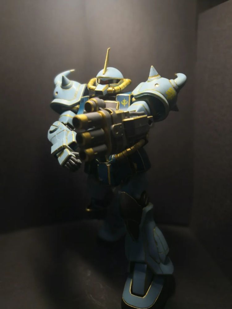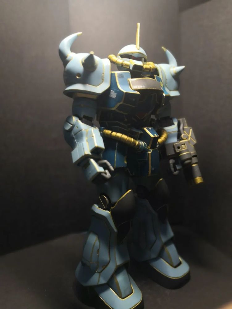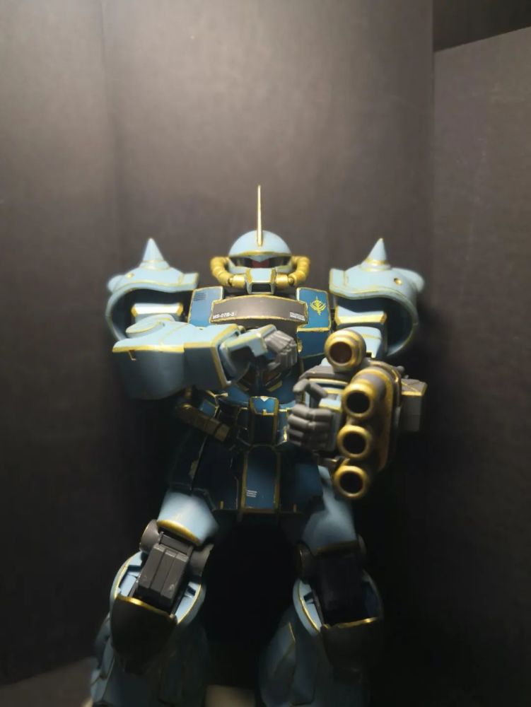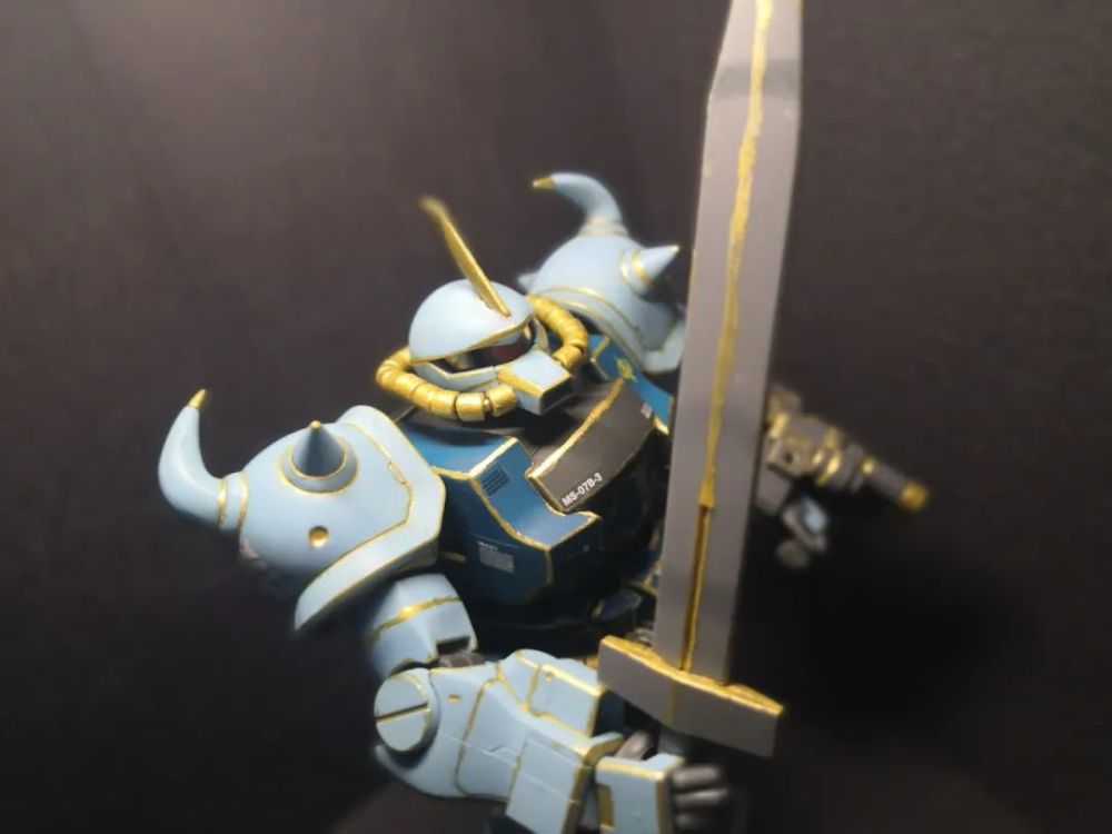 大爱这样的涂装风格,金色走线,镶金边了。尤其是配合吉翁的圆润机体直接满满的复古风。但是,创意很好,手法还有待改进,【欣赏】吧。