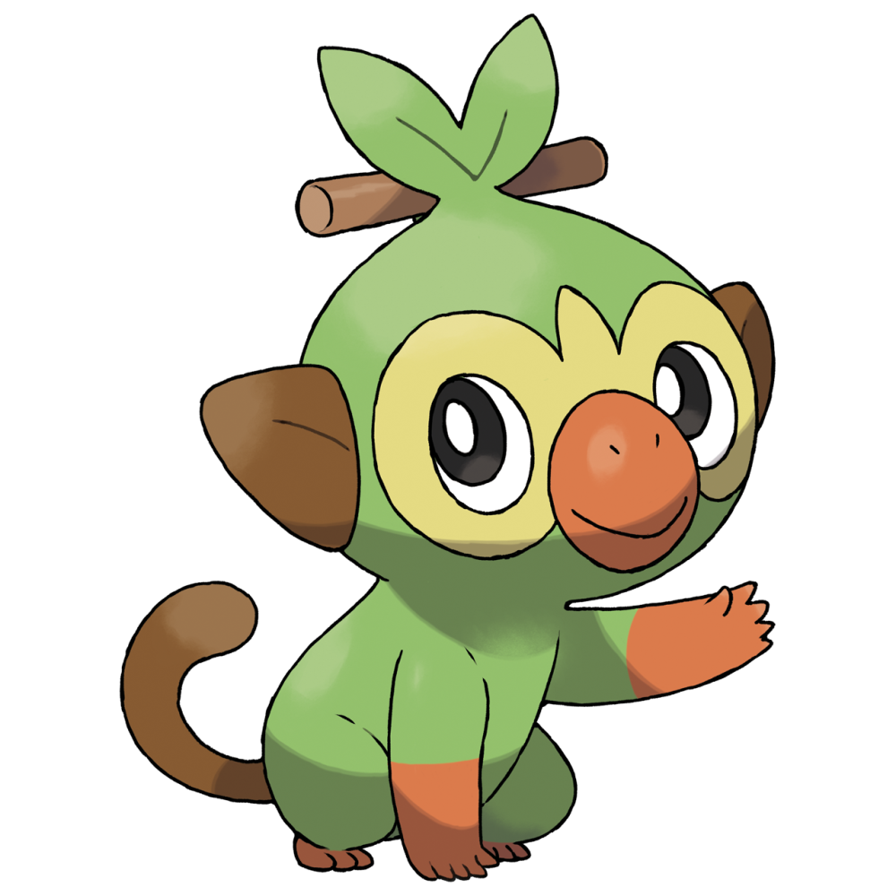 一段形态的敲音猴是真的可爱,绿色的身躯,橘红色的四肢,棕色的尾巴和耳朵都很合适。可以说在八代御三家中是最符合宝可梦传统画风的存在,身材比例也符合生物特征。敲音猴设计的点睛之笔就是头部的两片叶片状结构和那一根木棒,有点像是古代人的发簪。因为经常拿着这根树枝敲敲打打,经过长时间的变化,树枝变得越来越圆滑,可以敲出特殊的声音。也因为喜欢敲敲打打,敲音猴的进化路线是朝着音乐家的方向去的。