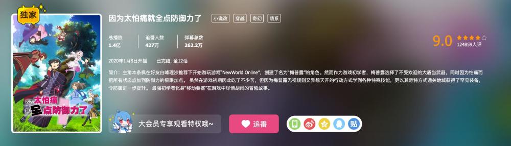 而从数据上看,像是《因为太怕痛就全点防御力了》这样不能再明显的爽番,实际上也获得了1.4亿的播放量,和9.0分的评价。投资方也不傻,数据都是会研究得比我们这些动漫自媒体更透的,一部尝到了甜头,难道还不去策划下一部同类型的作品?尤其是在这个,靠过去卖原作,甚至卖光碟来赚钱如今都走不通的时代,直接把播放权卖给海外,可以快速收拢资金,何乐而不为?