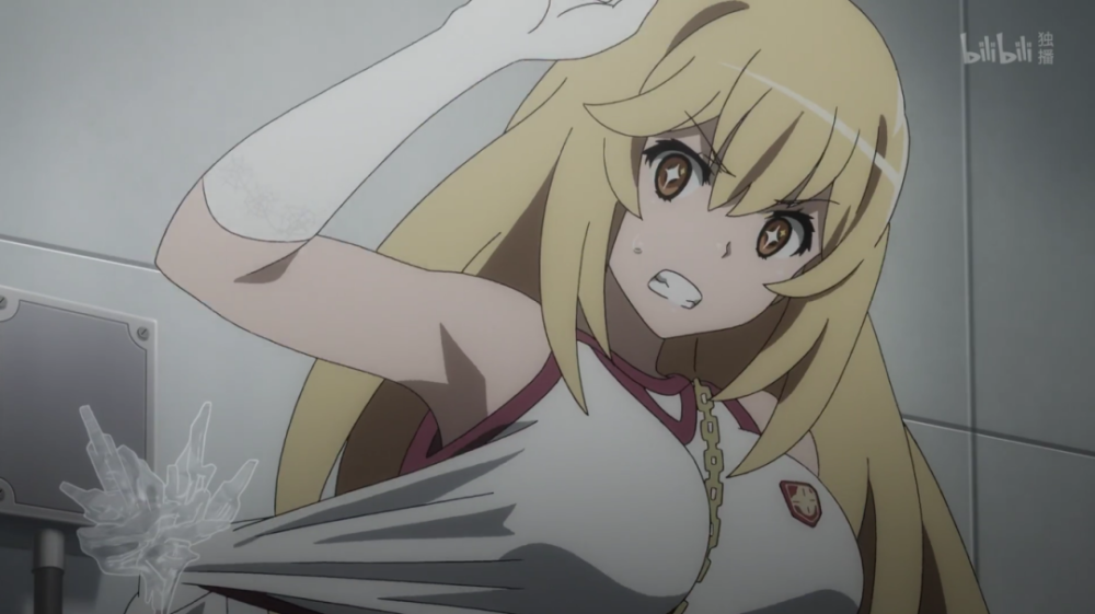 再来就是食蜂操和木原幻生的战斗,在前两集食蜂和炮姐同行的时候,当时炮姐怒气上涌扯食蜂的衣服,然而在第12集。没想到食蜂衣服又一次被扯了,直接被木原幻生用冰把她钉在那里。
