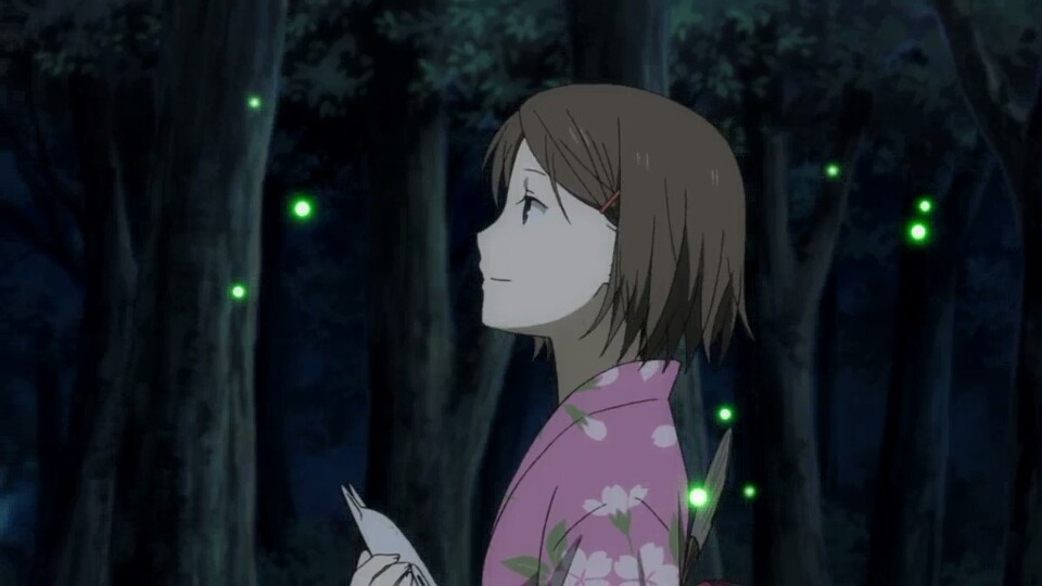 女孩拿起了男孩的面具,带着那段美好的时光,微笑着继续前行。而在那个夏天,在那片森林,萤火之森的故事还远远没有结束……