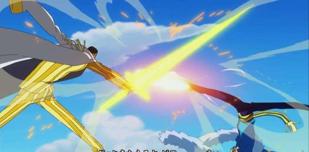 黄猿和雷利的矛盾来自于草帽海贼团,因为当时黄猿想要解决掉草帽海贼团的成员但是雷利及时出现阻止了黄猿。黄猿本来是一副漫不经心的样子但是在看到了雷利出手之后马上就认真了起来,并且用他的大招之一天丛云剑。天丛云剑应该是黄猿最强大的技能之一了,能够把他的果实能力和剑术完美的结合在一起。