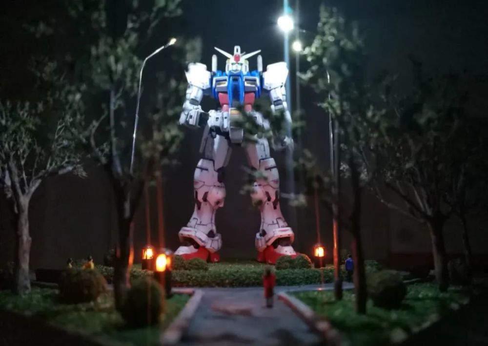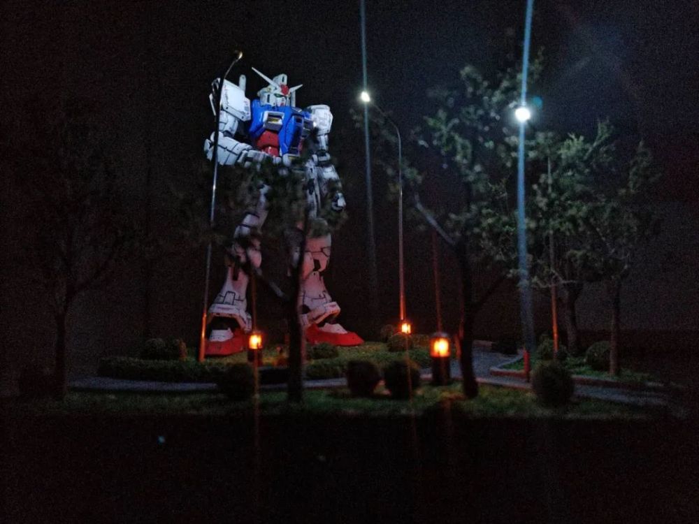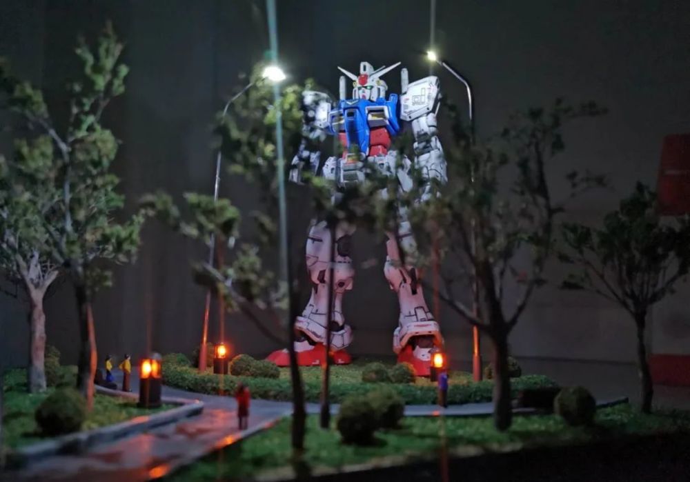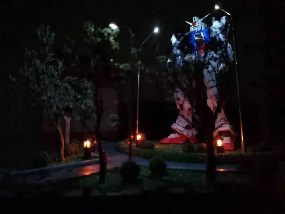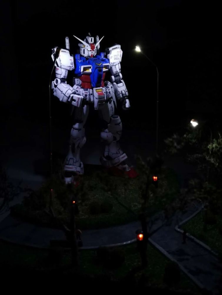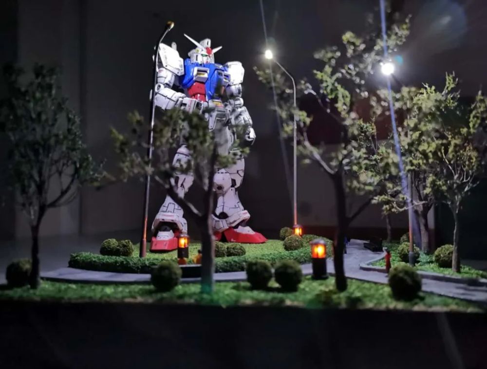 最赞的是地台上超比例高度的两个路灯,通常在小公园这类的场景内现实生活中是不会存在这么高大的路灯的,但这两个高高的路灯不仅为场景提供了足够的照明,又能完成对高达作品的补光效果——神作之笔!