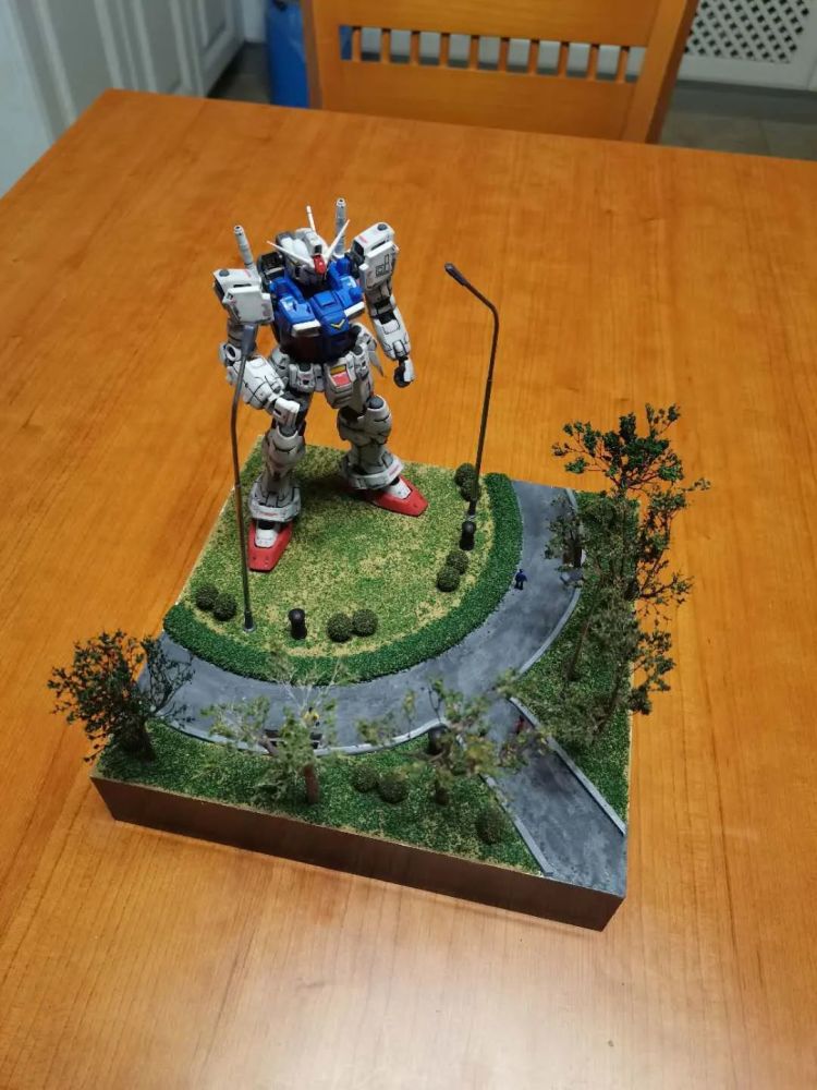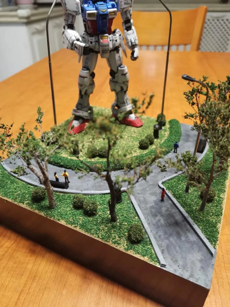 场景里虽然使用了RG的GP01,不过可以拿下来,换置其他1/144比例的模型,所以更像是一件地台作品。