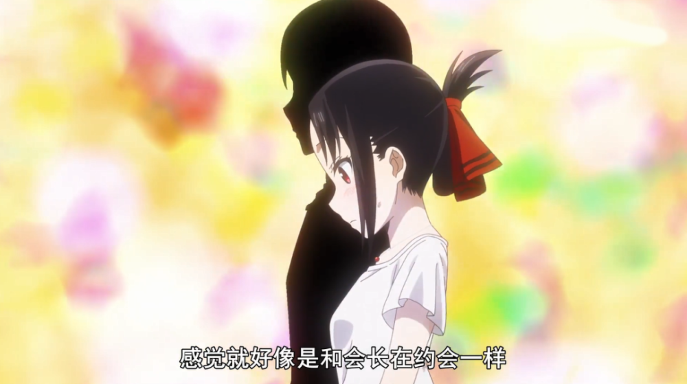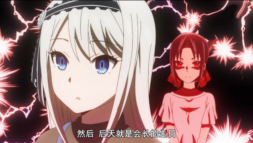 藤原书记是一个危险的存在,但在某种程度上她还是一位工具人。在第三幕故事中,白银会长借助辉夜赠送的扇子,想要以此引起工具人藤原书记的注意,进而让藤原书记去追寻辉夜喜欢他的事实。可未曾想却中了辉夜的圈套,无奈之下白银只好倒过来指责辉夜没有把他的生日告诉大家,这下又让藤原书记质疑起辉夜。