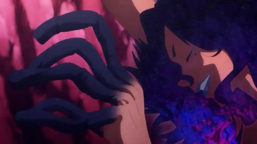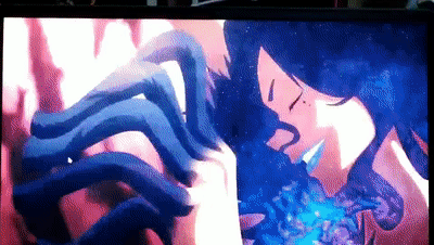 在PV里还有直叶的情报,下面这位是黑暗术士公会会长蒂.爱.艾鲁,之前爱丽丝放大招差点秒了她,如今再次出现目标对准到直叶身上,而且还抓住了直叶。下图是蒂.爱.艾鲁手变成了触手,吸收直叶的天命。