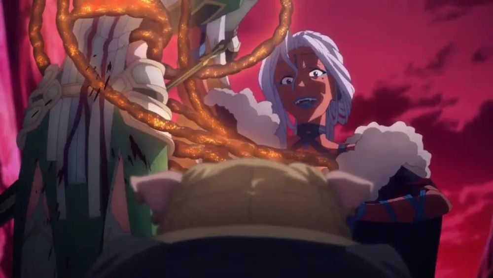 下图是被直叶被抓的PV截图,蒂.爱.艾鲁正在吸收直叶天命,而天命归零就会领便当。在直叶身边是兽人族(猪头人),至于直叶为何会被抓,这一切也和兽人族有很大关系。