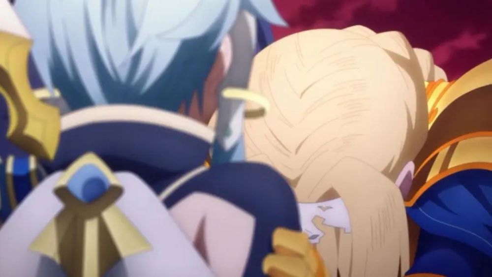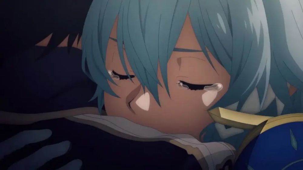 另外PV里还有爱丽丝和诗乃的画面,爱丽丝抓着诗乃在那里哭泣,到底是哭什么,难道说看到诗乃亲桐人了不成?又或者是因为团长的事?具体原因留给动画来揭晓吧。