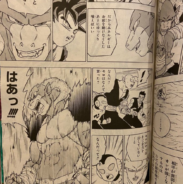 悟空认为继续打下去能赢全力魔罗,然后继续开了极意兆。而另一边梅尔斯和比鲁斯两人正在吃瓜围观,比鲁斯想要吃美食,梅尔斯却不会做,尴尬了。此外,悟空来地球的时候,就见过了维斯,维斯问了一句,你练成银发形态的极意功了吗?悟空很爽快地回答说,并没有呢。然后悟空限制又跟全力魔罗战斗,我想接下来大家应该都知道是什么结果了。
