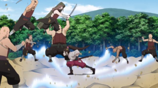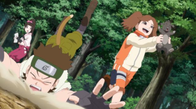 一开场就是花火的第十五班与乌冬的第五班联合行动,眼看着花火班就要拿下首杀,抓到头目,但是铁椿的一记风雪斩没能把盗贼头目击晕,反而把大树击倒挡住了野山葵与雀乃泪的去路,让乌冬的第五班抢了功劳。