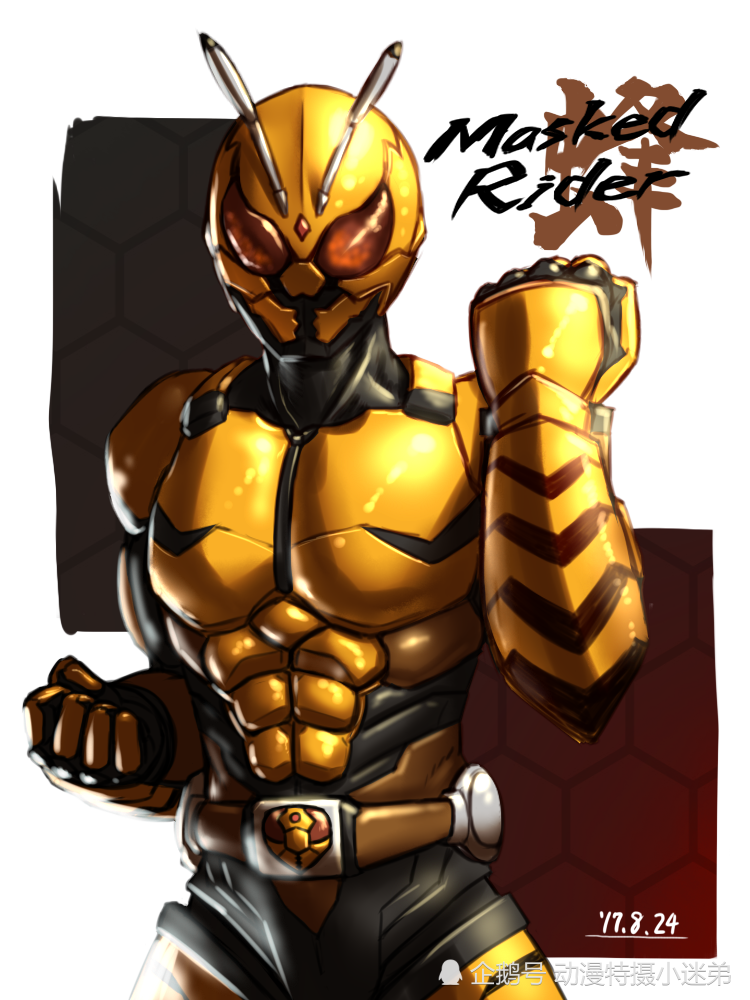 第四个假面骑士应该是以黄蜂为主设计的骑士,整体的颜色为黄色和黑色为主,有着一双橙色的复眼,头部有两个黑色的小线头,嘴巴的部位比较特别,看起来像是能够张开的,中间的腰带部位上有个黄蜂的面部,大家觉得这个假面骑士的造型怎么样?