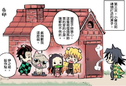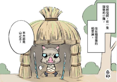 鬼灭之刃这部动画我想大家都应该看过吧,因为这部动画作品有一段比较华丽的动作戏,被不少的动画fans所称赞,也让这部动画的作画水平提升了一个档次,也让这部动画人气的更加火爆,不光是在日本人气高,我们本土这边人气也是不差的哟,一位名叫岳印的作者,他就将鬼灭之刃里的一些角色,画成了一部小漫画,三只小猪的漫画和故事我想在座的各位都不陌生吧,那你有看过鬼灭之刃版本吗?想看鬼灭之刃这个版本的小伙伴就可以直接下滑慢慢观看了