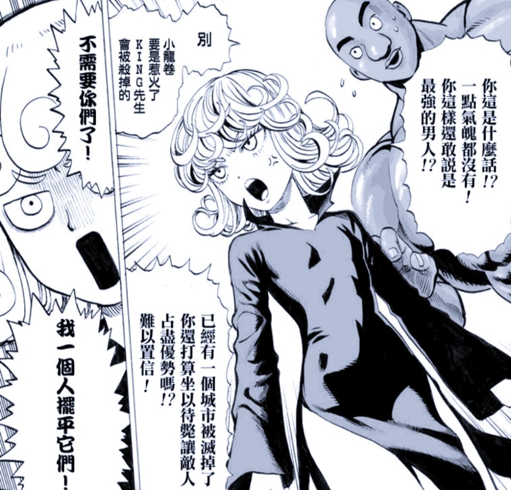 在英雄协会中,S级英雄是最强战力,除了神秘的第一位爆破外,现在实力最强的应该就是龙卷了,虽然闪光、邦古等人也不差,感觉还是敌不过龙卷。从黑光的口中也大概知道S级英雄的实力排位,King算是现在S级最强,波罗斯来袭时,龙卷就斥责了King的不作为,这让黑光很着急,让龙卷不要这样冒犯King,不然会领便当,可见King基本上已经被默认比龙卷更强。